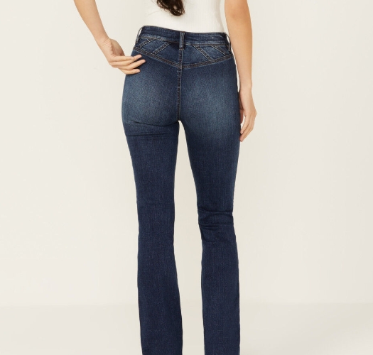 Shyanne Women’s Celeste Dark Wash High Rise Seamed Back Stretch Bootcut Jeans