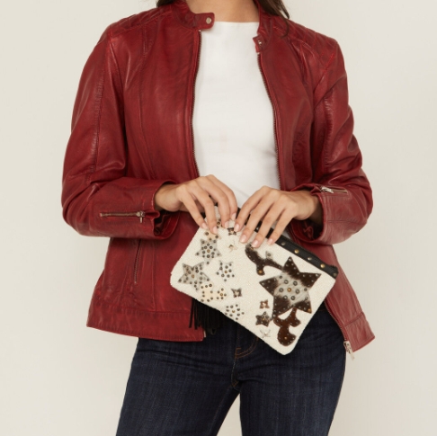 Shyanne Women’s Tegan Seed Beaded Cowhide Wristlet Clutch